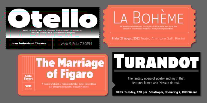 Bajazzo is a multi-weight and multi-width humanist sans-serif typeface. Inspired by old wood-type specimens, its timeless and unapologetic design lends itself for posters just as much as it does for text. Its extensive range of styles, widths, and weights make it fit for use in practically any application.